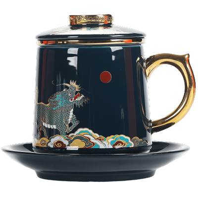 領藝 国潮风陶瓷茶水分离茶杯大容量办公室水杯带盖过滤马克杯