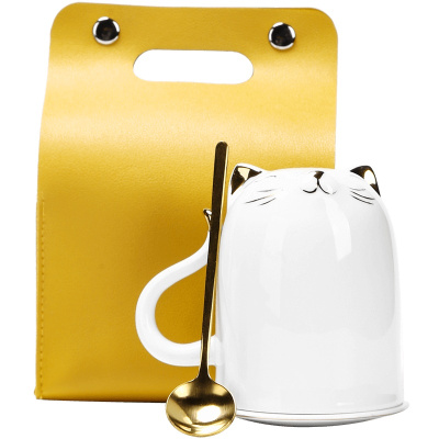 領藝 陶瓷马克杯个性简约萌系咖啡杯办公室单个茶杯喝水杯子带勺带盖