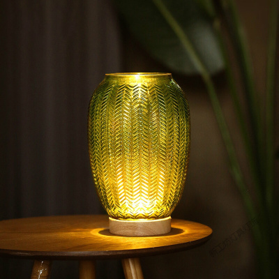 苏宁放心购 手工玻璃灯罩实木发光底座工艺品摆件LED夜灯别墅卧室书房床头装饰灯干花花瓶