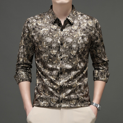 秋季衬衫男士长袖休闲时尚数码印花潮流百搭商务翻领上衣
