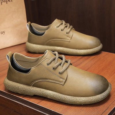 男士舒适新款系带简约时尚圆头低帮正装工作休闲皮鞋厚底亮面皮鞋