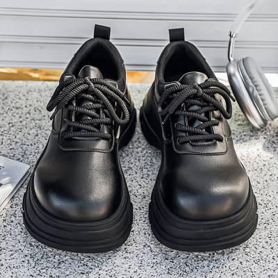 情侣秋季黑色系带简约时尚圆头低帮正装工作休闲皮鞋厚底亮面皮鞋