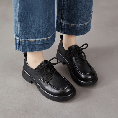 真皮鞋子女头层牛皮复古英伦系带中跟小皮鞋2026春季新款百搭单鞋