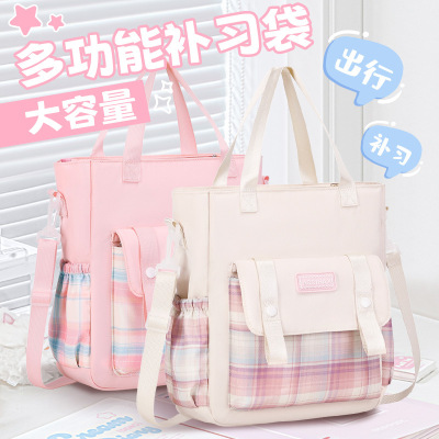 24新款补课袋学生双肩袋男女小孩儿童三用补习袋包大容量斜挎背包