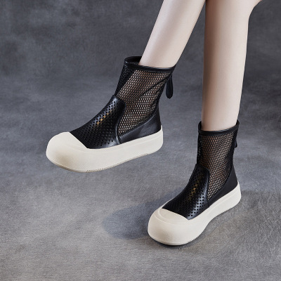 真皮厚底凉靴女春夏新款薄款镂空透气网纱马丁靴短靴平底凉鞋
