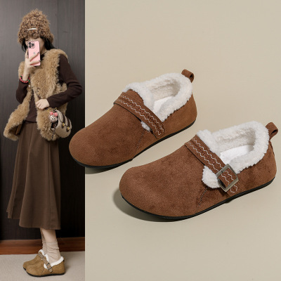 时尚秋冬绒面平底加绒勃肯鞋内增高复古雪靴保暖女棉鞋