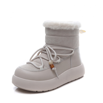 头层牛皮雪地靴女冬季新款羊羔毛复古百搭平底时尚短靴棉鞋