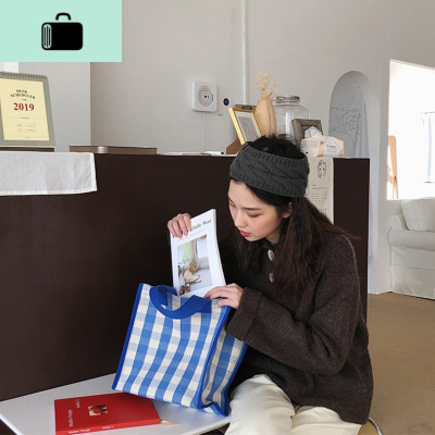 七只布袋19ss春夏格子手提手拎单肩可爱复古小众女生帆布包NEW LAKE女士单肩包