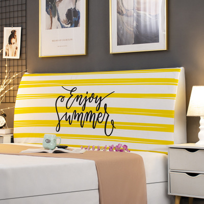 床头套罩北欧风格全包通用防尘软包保护床靠背简约现代木 黄色条文 高度50-65*长度220cm通用款