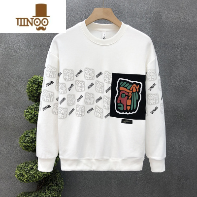 YANXU流行印花圆领卫衣男款休闲上衣2023秋季新款男士无帽套头外套