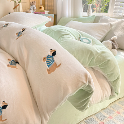 牛奶绒被套单件150x200x230冬季双面绒刺绣被套珊瑚绒床单三件套3