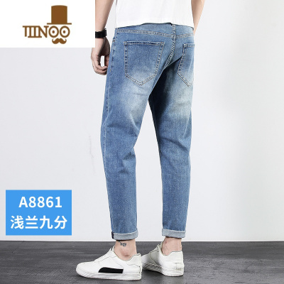 YANXU夏季男款九分牛仔裤男士韩版修身小脚裤潮牌弹力款夏季男裤子