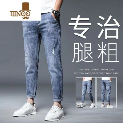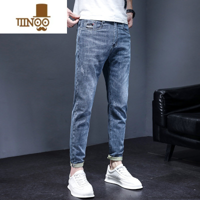 YANXU牛仔裤男潮牌2020薄款韩版潮流男士休闲百搭修身小脚九分裤男