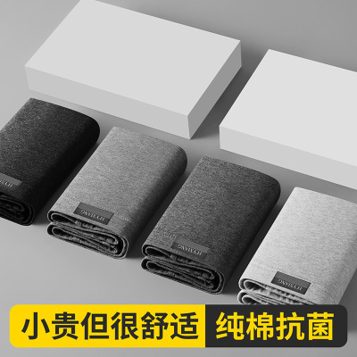 2024新款男士棉平角内裤4条装底裤青年中腰男内裤