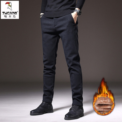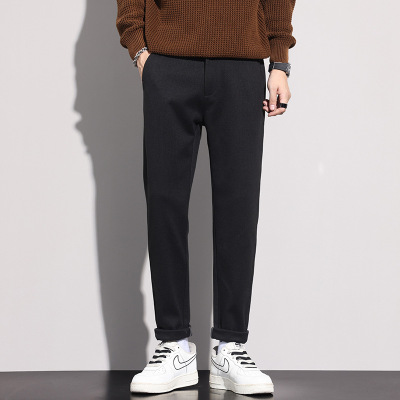啄木鸟2025秋冬新款男士直筒修身休闲裤西装裤子加厚男款商务长裤