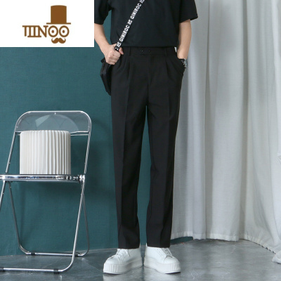 YANXU冰丝小西裤男士夏季薄款阔腿直筒宽松休闲长裤感夏天西装裤子