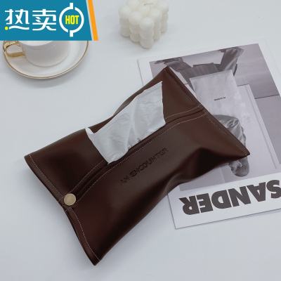 敬平车载款奶咖色皮纸巾套 杏色米色装饰纸巾盒咖啡厅ins风纸巾套 酒棕色