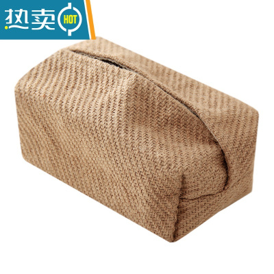 敬平日式简约纸巾套家用客厅民宿棉麻布艺抽纸盒车载创意纸巾盒ins 平纹黄麻 纸巾套