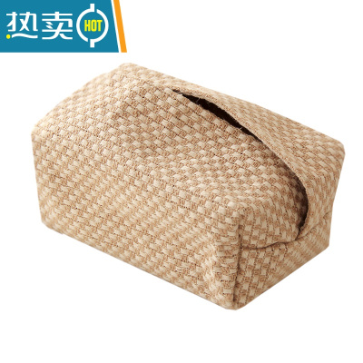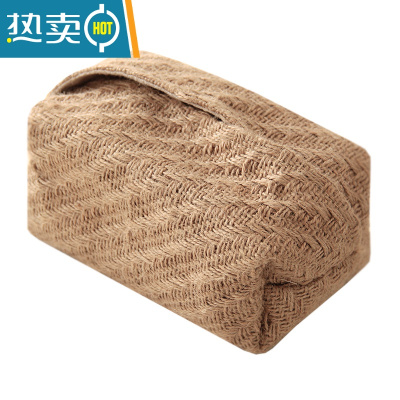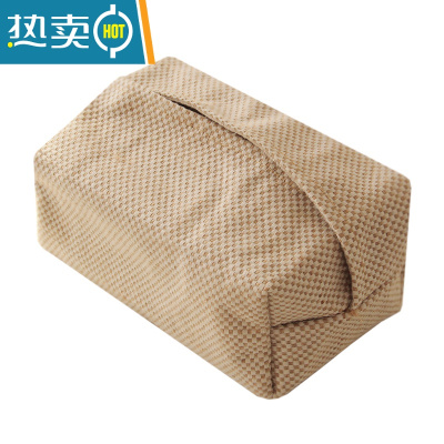 敬平日式简约纸巾套家用客厅民宿棉麻布艺抽纸盒车载创意纸巾盒ins 粗纹理黄麻 纸巾套