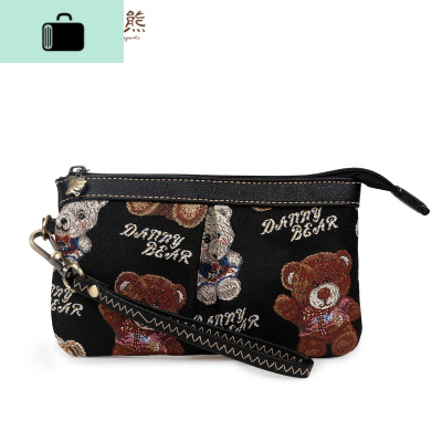 新款小熊帆布手拿包卡通可爱零钱包复古布艺女包休闲手机包NEW LAKE