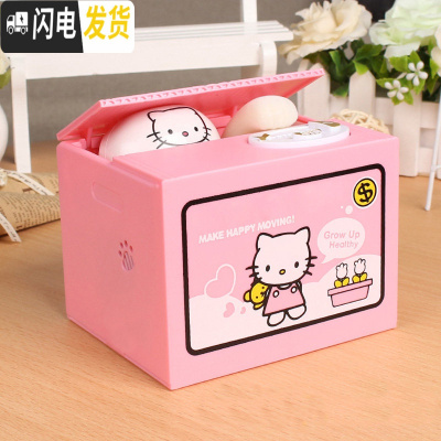 三维工匠卡通创意有趣可爱贪吃狗储蓄罐小狗硬币零钱存钱罐儿童小男孩 粉色KT偷钱猫(送2节电池+贴纸)