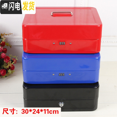 三维工匠带锁铁盒手提小箱子收纳盒加厚收银箱保险储物盒零钱密码盒储蓄罐 特大号密码[红色]