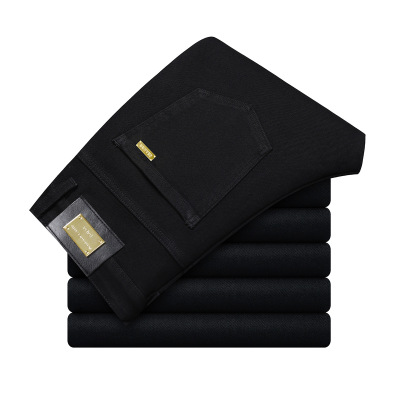 常规加绒可选男装修身牛仔裤电商弹力黑色裤子男