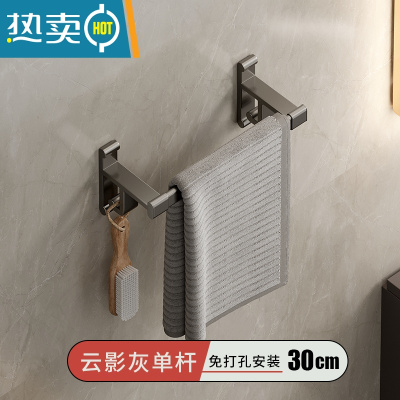 敬平枪灰免打孔太空铝毛巾架轻奢毛巾杆挂杆卫生间挂架双杆浴室浴巾架 枪灰色单杆30CM浴室置物架