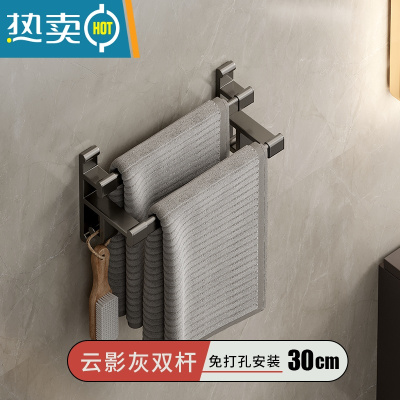 敬平枪灰免打孔太空铝毛巾架轻奢毛巾杆挂杆卫生间挂架双杆浴室浴巾架 枪灰色双杆30CM浴室置物架