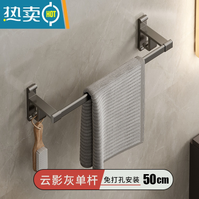 敬平枪灰免打孔太空铝毛巾架轻奢毛巾杆挂杆卫生间挂架双杆浴室浴巾架 枪灰色单杆50CM浴室置物架