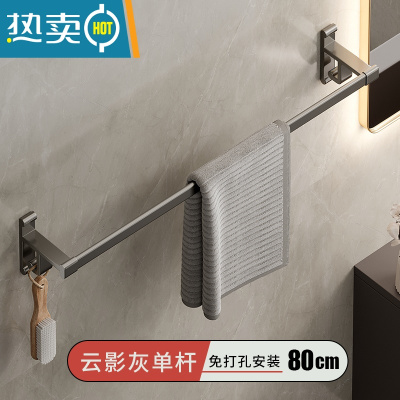敬平枪灰免打孔太空铝毛巾架轻奢毛巾杆挂杆卫生间挂架双杆浴室浴巾架 枪灰色单杆80CM浴室置物架