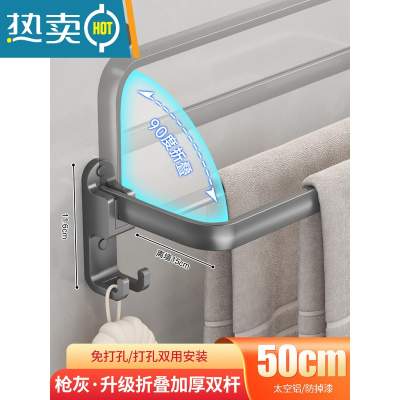 敬平枪灰太空铝毛巾架免打孔毛巾杆双杆卫生间浴巾置物架浴室挂件轻奢 枪灰色[升级折叠加厚]双杆50cm-9990浴室置物架