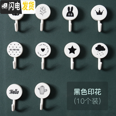 三维工匠厨房墙上墙壁粘贴拖把钥匙无痕挂钩置物架绕线器强力衣服帽挂钩 黑色印花[10个装]
