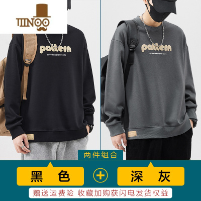 YANXU卫衣男新款圆领套头上衣美式潮牌长袖时尚百搭宽松打底衫