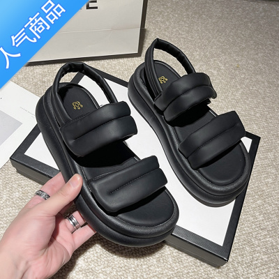 SUNTEK学生凉鞋女2023年夏季新款厚底高级魔术贴休闲沙滩鞋网红女款