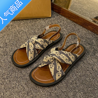 SUNTEK复古高级感罗马凉鞋女仙女风2023年春夏季新款法式平底沙滩软底鞋