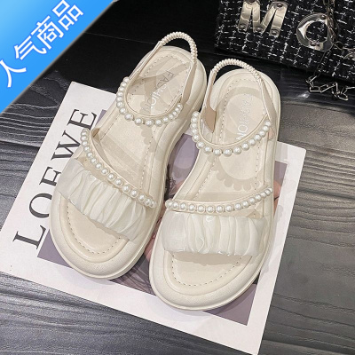 SUNTEK凉鞋女款2023年夏季新款时尚厚底仙女风罗马鞋子珍珠外穿软底沙滩