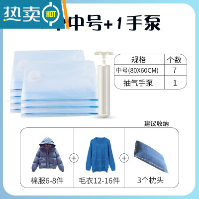 敬平真空衣物棉被压缩袋旅行收纳袋防潮防虫压缩袋大号中号小号送手泵 7个中号+手泵 大号(100*70cm)