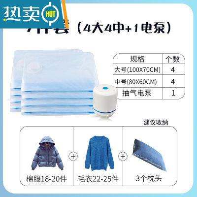 敬平真空衣物棉被压缩袋旅行收纳袋防潮防虫压缩袋大号中号小号送手泵 9件套(4大4中+电泵) 大号(100*70cm)