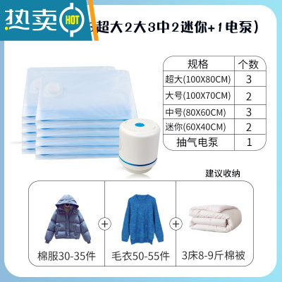 敬平真空衣物棉被压缩袋旅行收纳袋防潮防虫压缩袋大号中号小号送手泵 (3超大2大3中2迷你+电泵) 大号(100*70cm