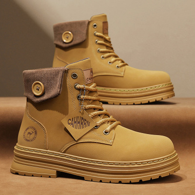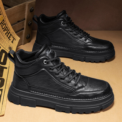 秋冬新款皮面复古时尚户外工作休闲高帮靴日常潮搭运动马丁靴男靴