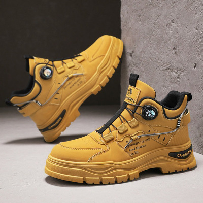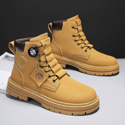 高帮旋转纽扣免系带马丁靴休闲百搭增高户外运动潮搭男士机车靴