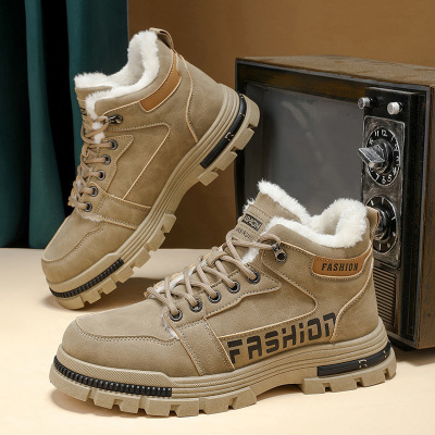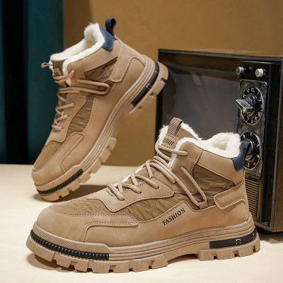 大码马丁靴男鞋冬季新款高帮加绒保暖工装靴男士休闲户外短靴