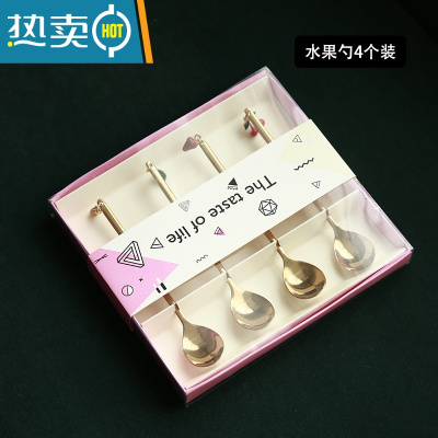 敬平水果签果插网红叉子欧式小奢华水果叉套装创意可爱吃水果的叉子 水果勺子4只彩盒装