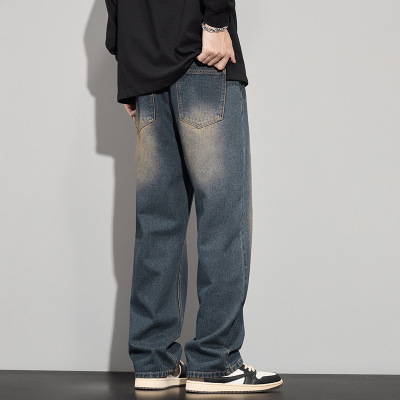 新款秋冬牛仔裤子男宽松高街美式街潮时尚高品质欧美风潮男直筒裤