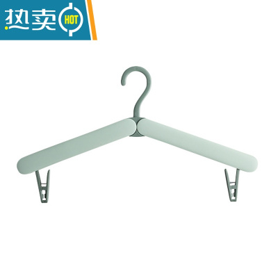 敬平折叠衣架旅行便携晾晒户钩晾衣绳衣架带夹子绳子被子晒衣器 绿色1个