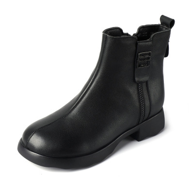 秋新款百搭小牛皮切尔西靴低帮真皮马丁靴短筒后拉链粗跟单靴