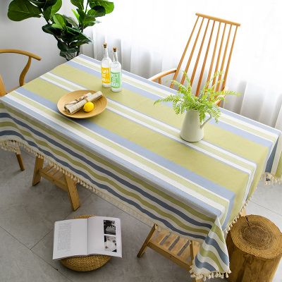 北欧条纹桌布布艺棉麻茶几西餐桌布灰蓝色长方形家用现代简约台布