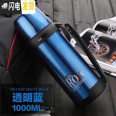 三维工匠保温壶便携户外不锈钢水壶家用暖水瓶车载旅游大容量保温杯 透明蓝1000