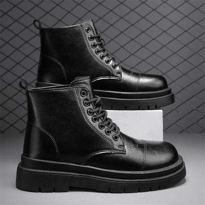 马丁靴男秋季高帮英伦风复古高跟增高厚底高级百搭休闲黑色男鞋